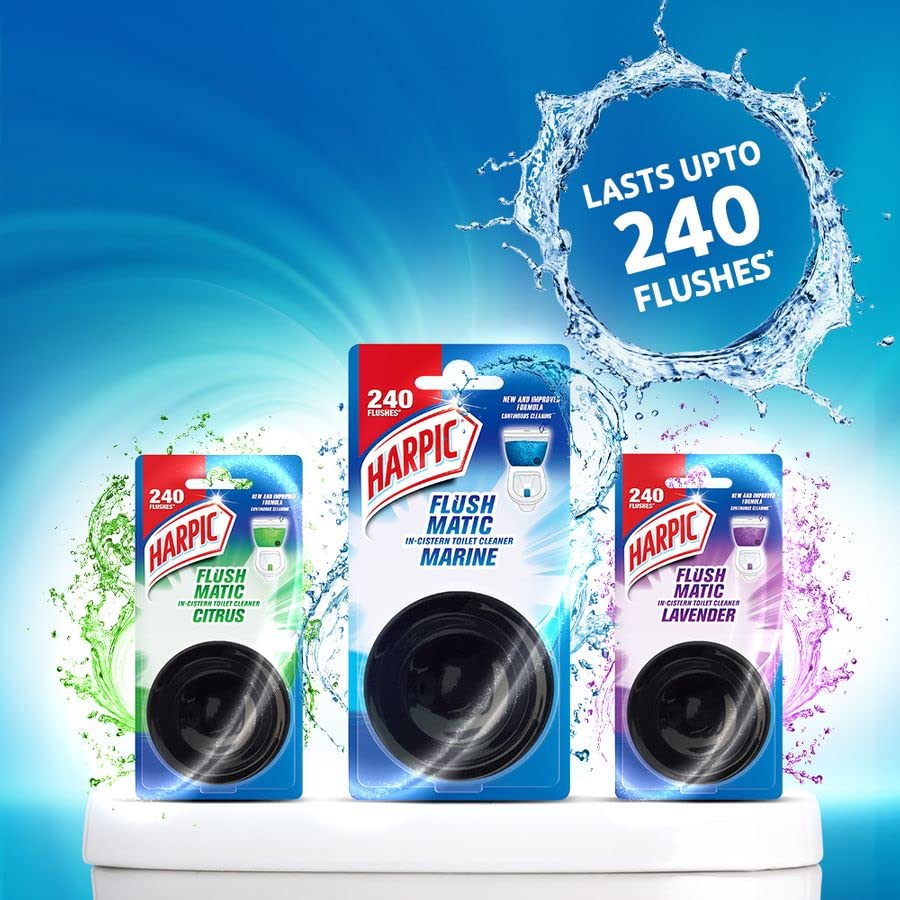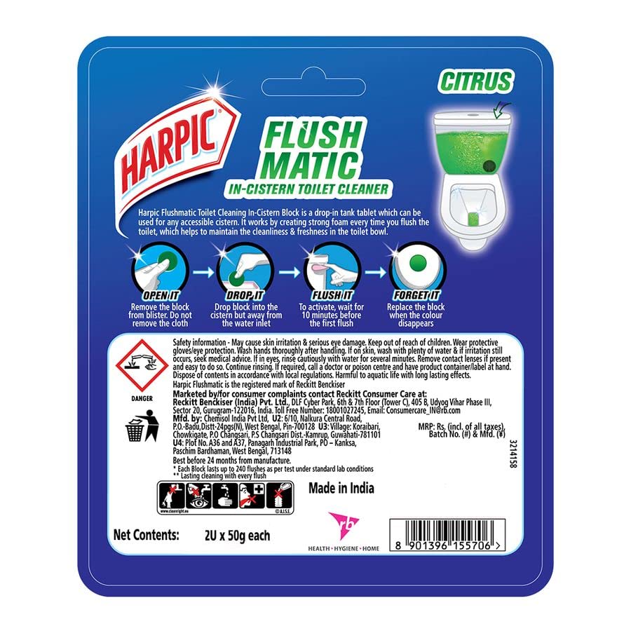 Harpic Flushmatic In-Cistern Toilet Cleaner Blocks, Citrus – 100 g | Lasts Upto 240 Flushes
