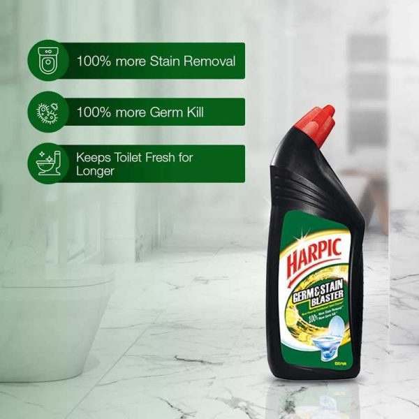 Powerful cleaning agents cling to the toilet surface to remove tough stains and kill 99.9% of germs to deliver 100 % more stain-removal and improved germ protection than our ordinary toilet bleach and detergent products.