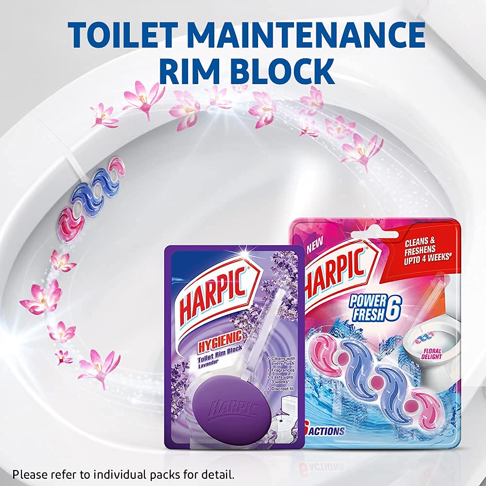 Harpic Power Fresh 6 Toilet Cleaner Rim Block, Floral Delight – 35 g | Cleans & Freshens Upto 4 Weeks