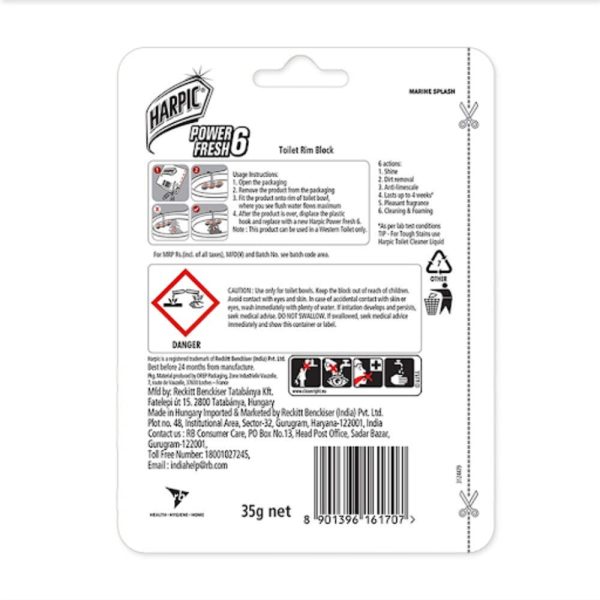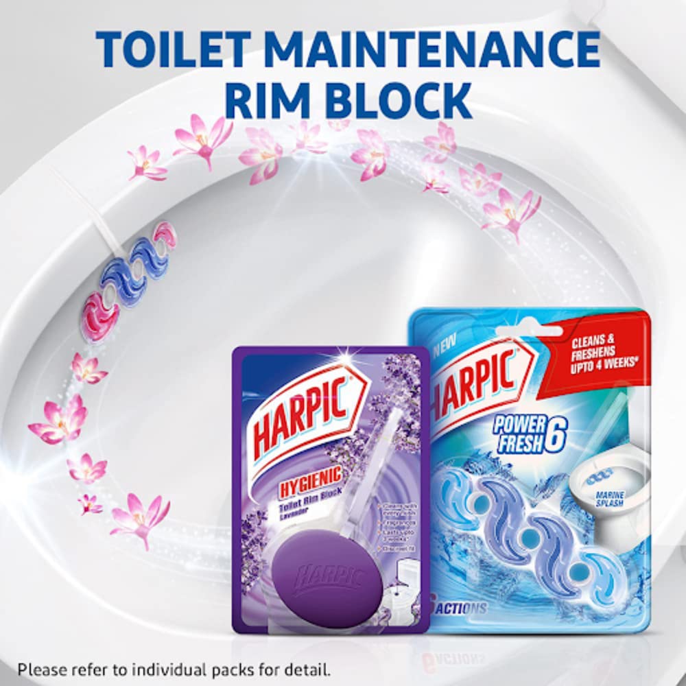Harpic Power Fresh 6 Toilet Cleaner Rim Block, Marine Splash – 35 g | Cleans & Freshens Upto 4 Weeks