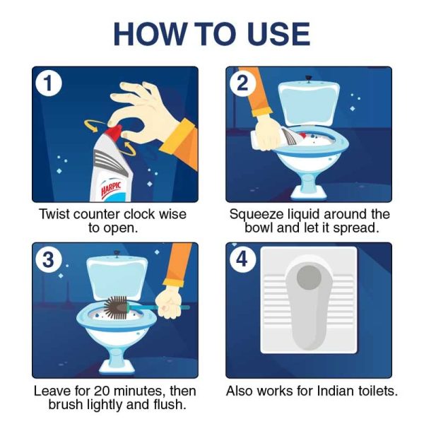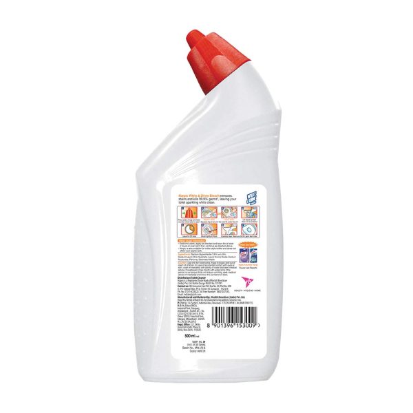 This quick acting 2-in-1 formula of disinfectant plus bleach is everything your toilet needs for a sparkling, hygienic clean. The thick liquid kills 99.9% of germs, removes stains and whitens the bowl. In fact, your toilet will look whiter with every use. It’s suitable for Indian style toilets and does not affect your septic tank.