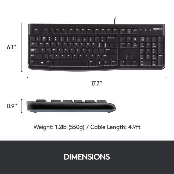 Logitech K120 Keyboard gives you a better typing experience that’s built to last. Your hands will enjoy the low-profile, whisper-quiet keys and standard layout with full-size F-keys and number pad. The slim keyboard isn’t just sleek it’s tough with a spill-resistant design, sturdy tilt legs and durable keys. You simply plug it into a USB port on your desktop, laptop or netbook computer and start using it right away. You will enjoy a comfortable and quiet typing experience thanks to the low-profile keys that barely make a sound and standard layout with full-size F-keys and number pad. Liquid drains out of the keyboard, so you don’t have to worry about ruining your investment with accidental spills. The keyboard has a thin profile that adds a sleek look to your desk while keeping your hands in a more comfortable, neutral position. You can extend the sturdy folding legs to increase the keyboard tilt by 8 degrees to address your personal ergonomic needs. You can extend the sturdy folding legs to increase the keyboard tilt by 8 degrees to address your personal ergonomic needs. It keeps your hands in a more natural position so you can type in greater comfort.