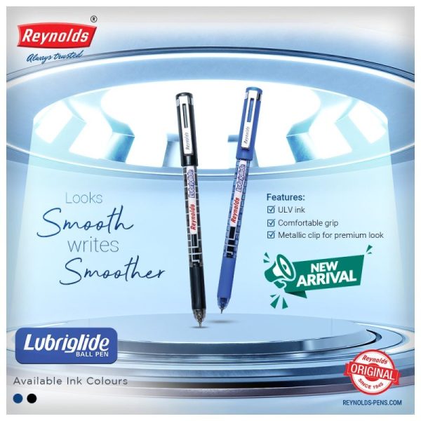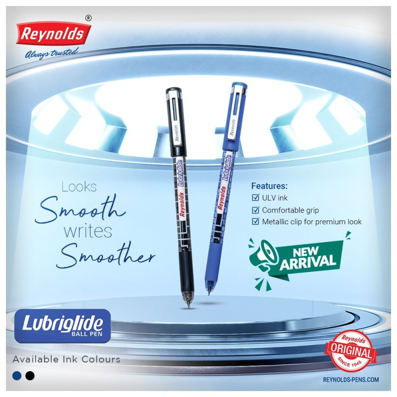 The all-new Lubriglide Ball Pen is designed with the classical Reynolds aesthetic. Its sturdy body and a unique ergonomic grip allow for a firm and comfortable grip even while writing for long. In addition to its classical body, this pen boasts metallic features and ultra-low viscosity ink. Buy the Lubriglide Ball Pen for an unparalleled writing experience.