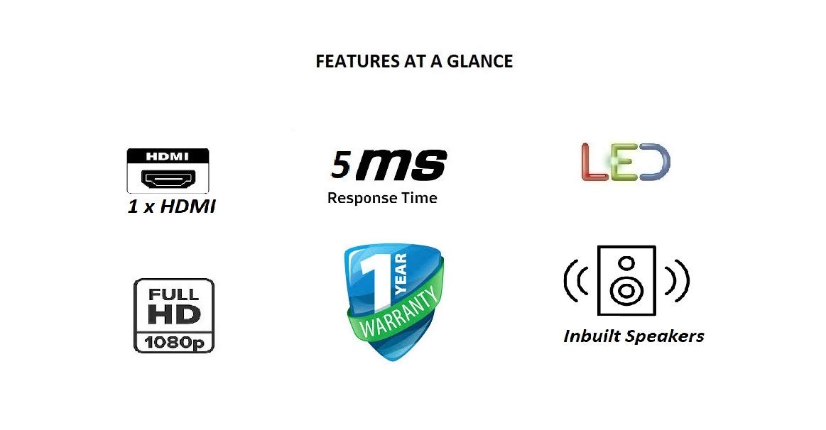 Zebronics Zeb-A24FHD LED 24 inch (60.4 cm) LED Monitor with Full HD Display, HDMI & VGA Port, built in Speaker, Slim Bezel